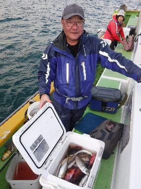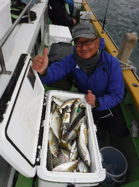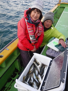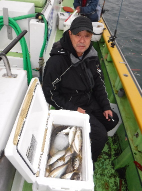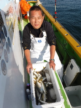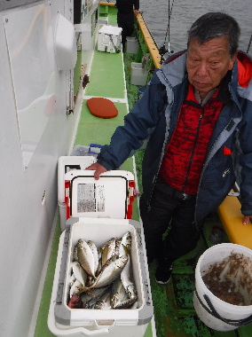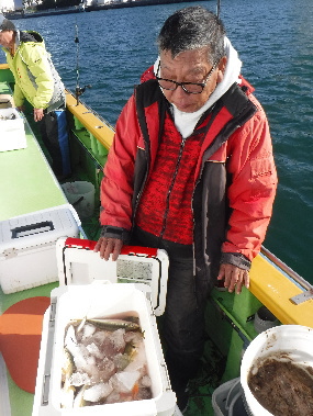 ライトアジ船 本牧沖~富岡沖 ☆誠に勝手ながら 電話予約の変更 をさせて頂きます。 ※ライトアジ船・ 従来は12時 今後は午後1時より とさせて頂きます お間違いの無い様に お願い致します ※ 本牧沖 12月8日(月) 18~58尾 17~33cm 本日も出船有りました。 朝より冷え込みあり 風は無し・曇のち晴れ 朝は型だけは見られて 少し辛抱に構える 移動しても型見られ 小型交じりで好調! 振り出しに戻り中・小型 見られ辛抱する・後半 皆さん頑張る 何とかお土産確保。 良しとします 明日もがんばります ※凪に期待しますよ。 又頑張るねえー コマセは大事です。 竿頭: 松原 様 ※ 明日・9日出船します。 お待ちしています 船長より 氷が少なく「魚鮮度」を 悪くしている人見ています 鮮度の良いお魚を 持ち帰り下さい。 ※ 今年はコマセワーク 棚取りが一番大事ねぇー 置き竿は厳しいよー 美味しいお魚ですよ。 ![]()